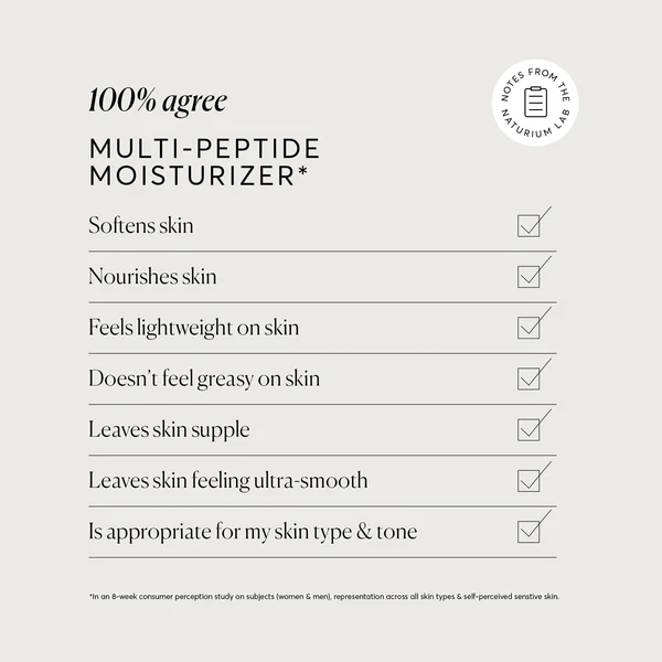 Our Multi-Peptide Moisturizer is clinically proven to show an improvement in the look of fines lines and wrinkles in 8 weeks.*